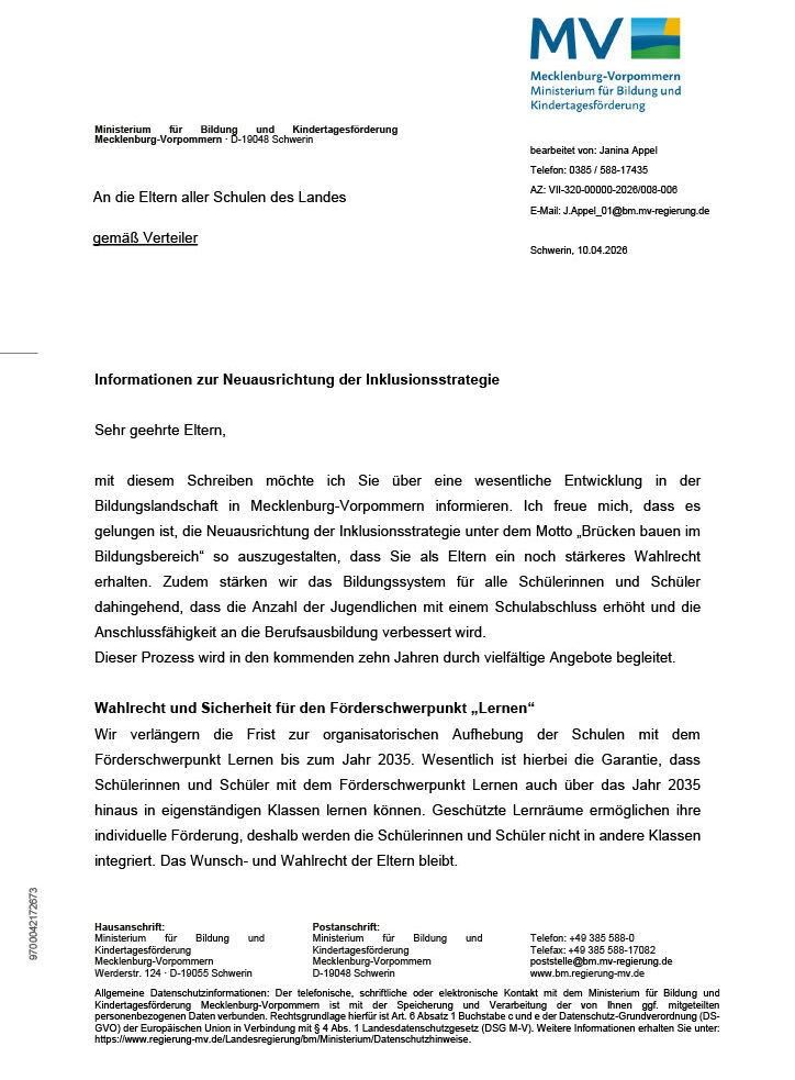 Sehr geehrte Eltern/Sorgeberechtigte und Schüler*innen,